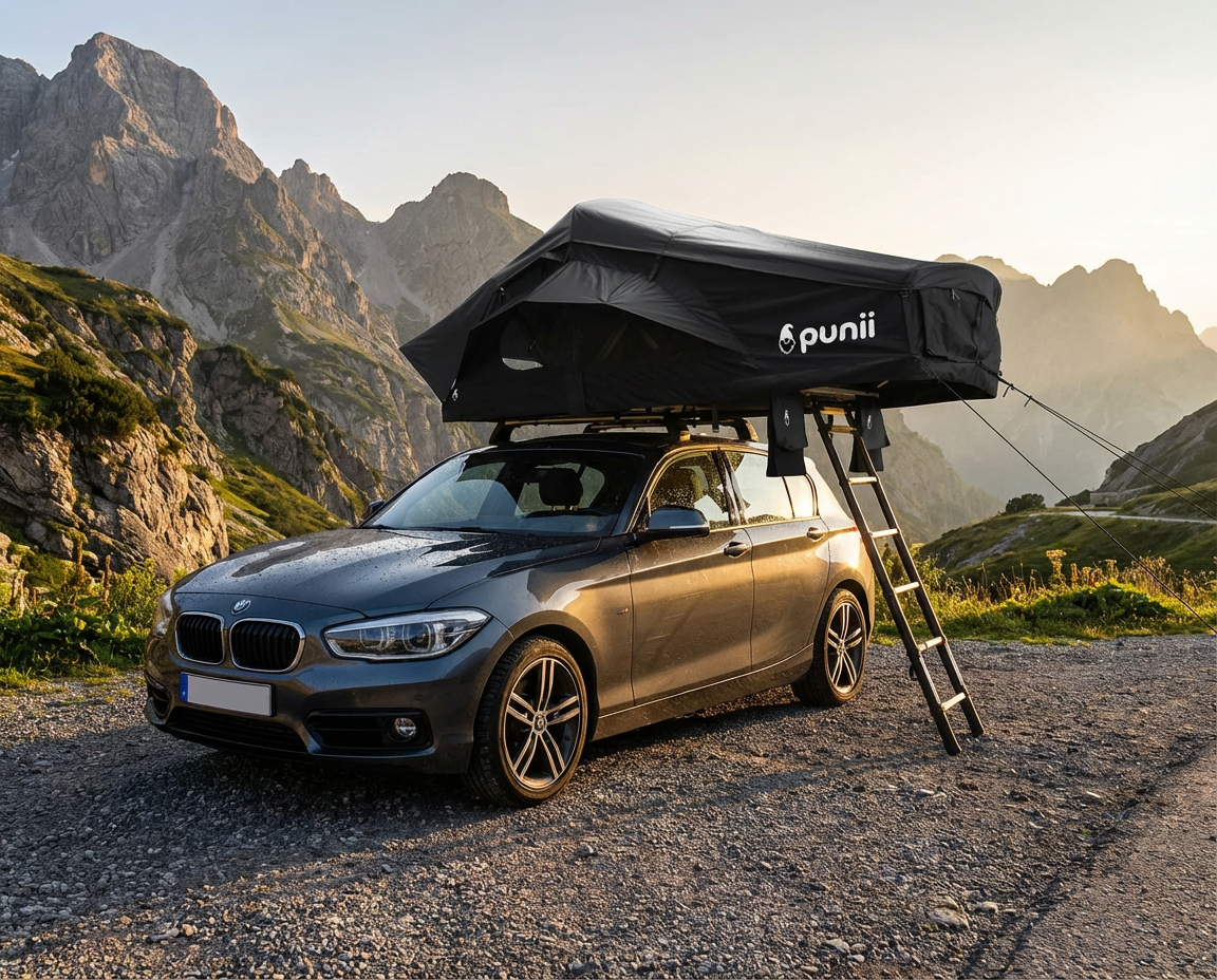 Das moenga S ist kompakt, schnell aufgebaut und ideal für Solo-Trips oder Reisen zu zweit. Die Teleskopleiter wird ausgezogen, das Zelt entfaltet sich in wenigen Minuten – ganz ohne Aufwand. Innen sorgt eine 7 cm dicke Matratze für bequemen Schlaf, während das wetterfeste Material bei Regen, Wind und Sonne schützt. Die integrierte LED-Beleuchtung bringt Licht ins Zelt. Mit einer Liegefläche von 140 cm bietet moenga S ausreichend Platz für ein bis zwei Personen – ideal für minimalistisches Reisen mit Komfort.