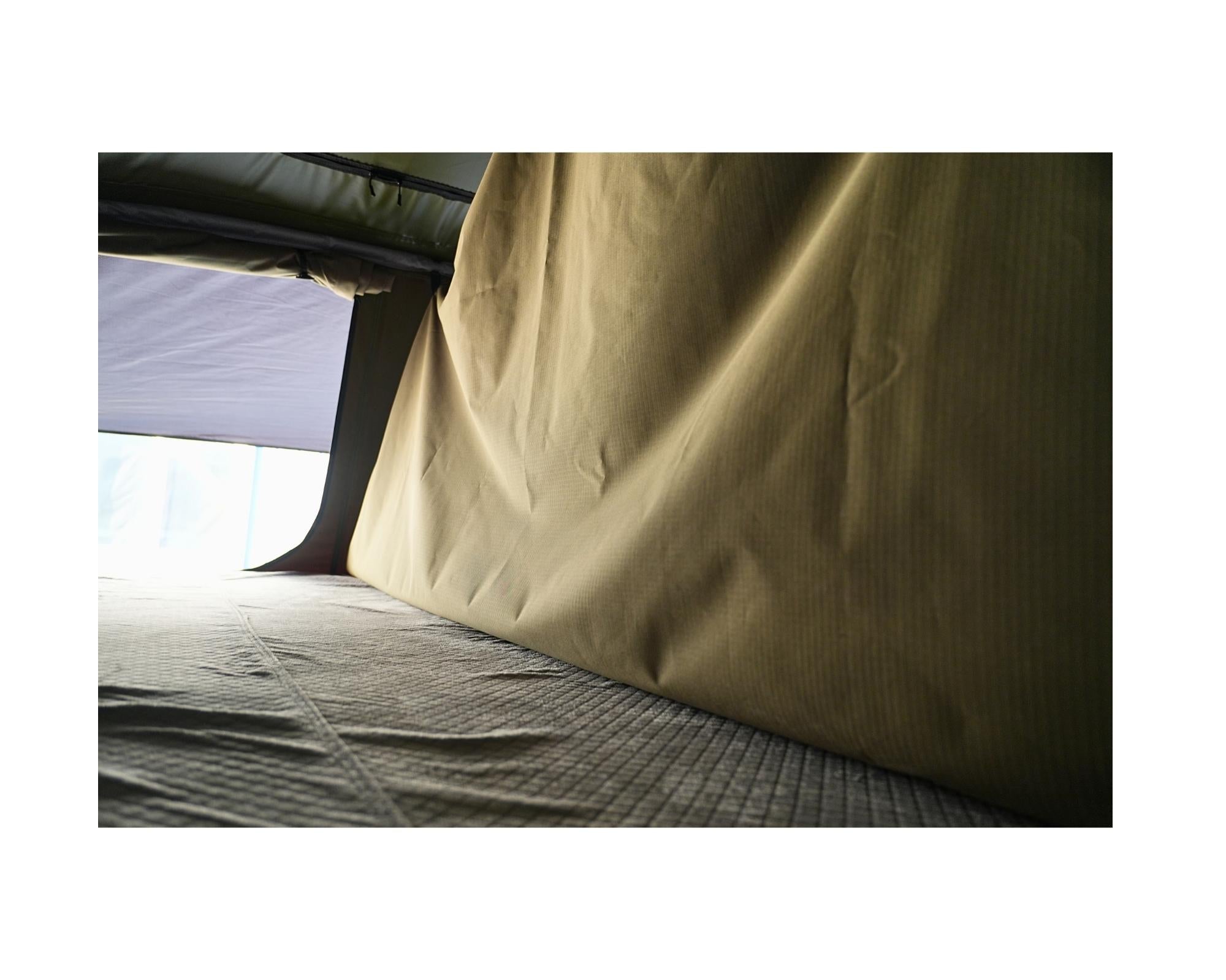 Mit der Zeltabtrennung verwandelst du dein moenga XL im Handumdrehen in zwei separate Schlafkabinen. Die Abtrennung wird einfach am Zeltgestänge eingehakt und passt in jedes moenga XL – ganz ohne Umbau. Ideal für Familien, Freunde oder alle, die etwas mehr Privatsphäre möchten. Durch die zwei Leitern sind beide Bereiche separat zugänglich, sodass jeder seinen eigenen Eingang hat.